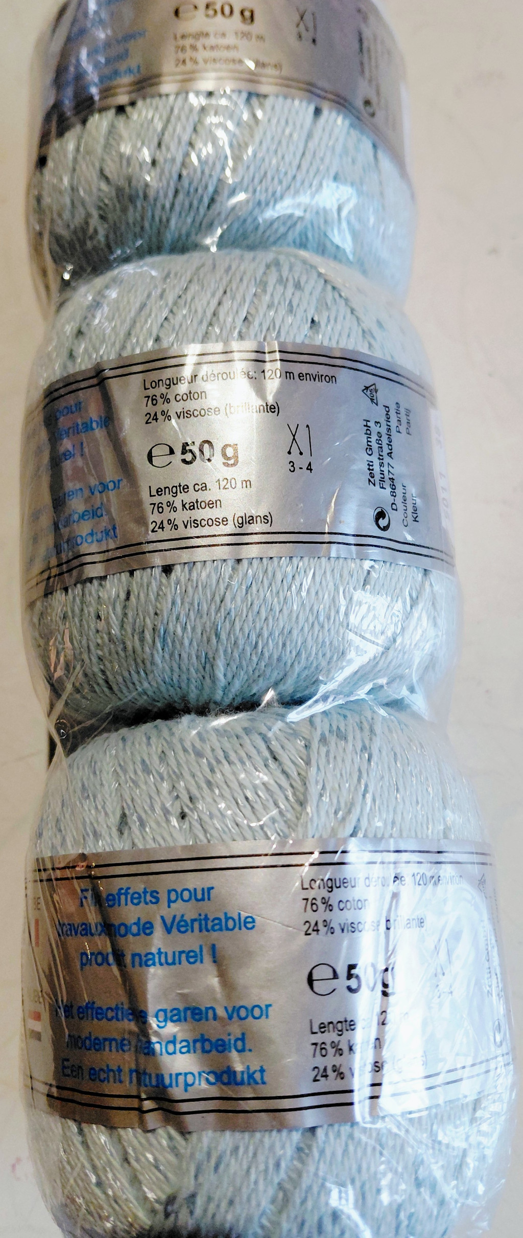 150g világoskék fonal  76% pamut+ viszkóz