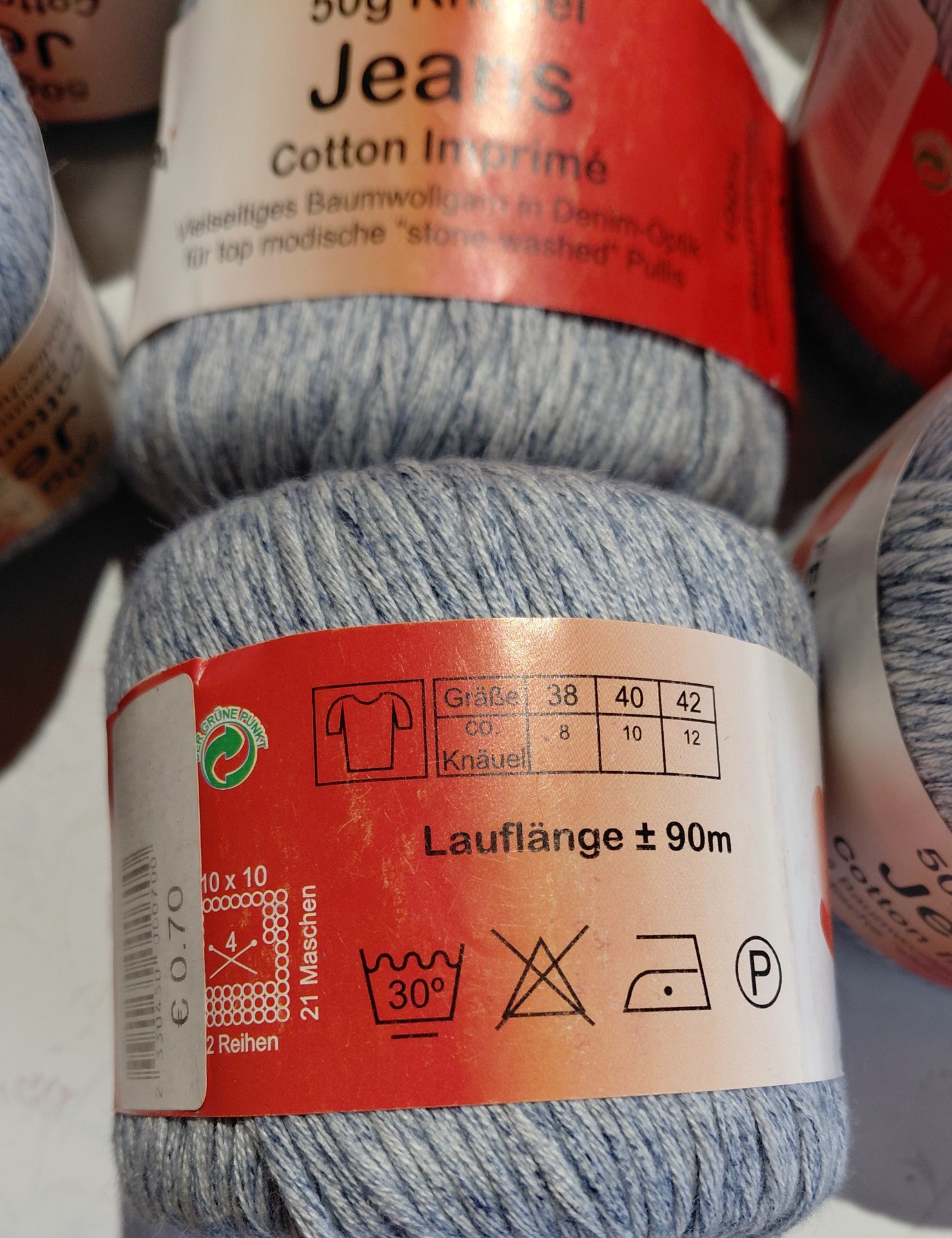 500g Jeans fésült pamut fonal
